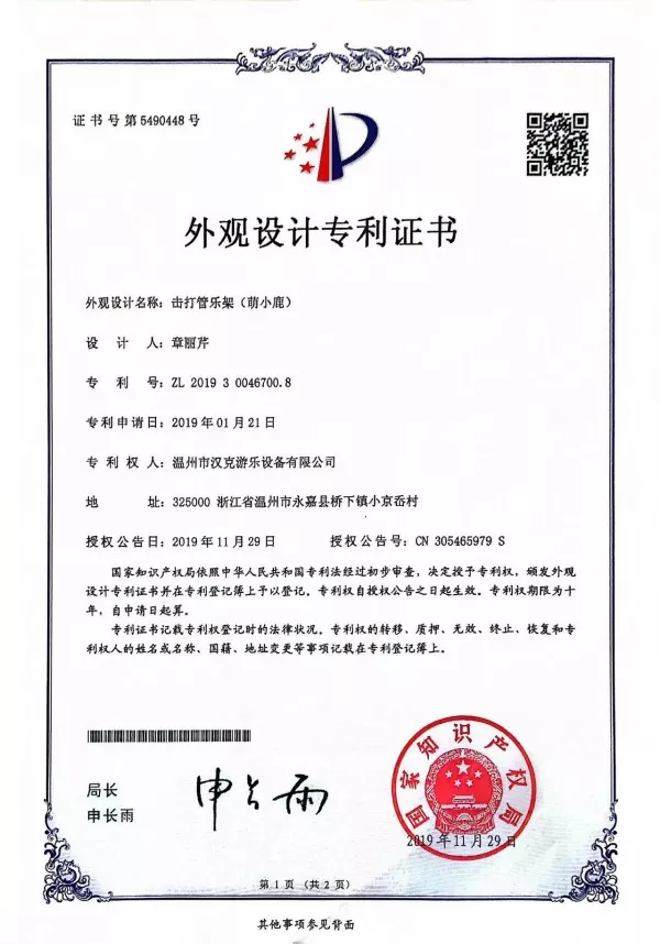 Ударачки инструмент у облику жирафе је производ Хенкове серије Кацалол, која је Хенкова главна промоција. Серија има много слатких цртаних дизајна, а жирафе су једна од њих. Сваки производ у серији патентиран је у Кини. Панел жирафе је направљен од једанаест алуминијумских цеви, малих и симпатичних облика, што га чини веома погодним за малу децу.
