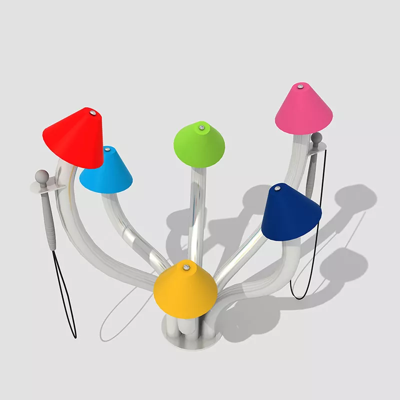 Сет од шест конусних "шешира" обложених прахом живих боја, са валовитим шипкама од нерђајућег челика на различитим висинама и угловима, што га чини упечатљивим елементом који ће ускоро постати најпопуларнији.