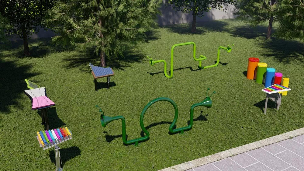 Ова игралишта која говори о цеви за уплетену поцинковану челичну цев са два симпатична углова различитих висина, што је чини практичним за децу различитих старосних група да се заједно играју. Педала стопала дизајнирана је да подстакне слух и помогне деци да разумеју узрочни однос звучног ширења. Материјали отпорни на временске прилике могу осигурати дугорочну употребу на отвореном. Због своје лакоће уградње и одржавања, веома је погодан за дневне центре, класификоване урбане паркове и друге спољне или затворене игралишта за децу.