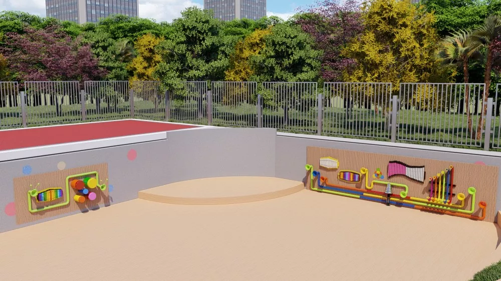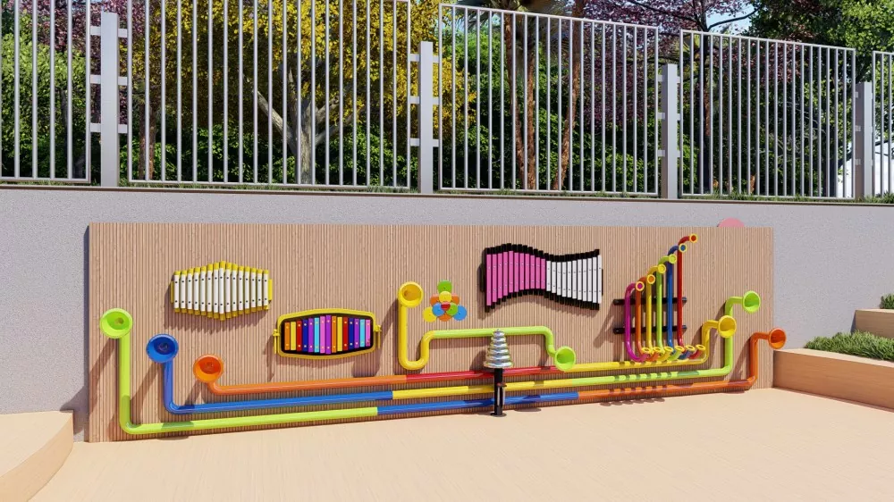 Ова музичка опрема за разговоре говори се од временских отпорних на временске поцинковане цеви од високог квалитета, алуминијумске алуминијума и ПЕ материјала. Постоји сет од шест звучника који могу говорити, опремљени маримбама и другим комбинацијама инструмената за децу која ће се играти. Величина и боја овог звучног игралишта могу се прилагодити и производ се такође може заменити према вашим потребама. Такође се препоручује да то учините веће за најбоље визуелне ефекте и боље искуство у играма.